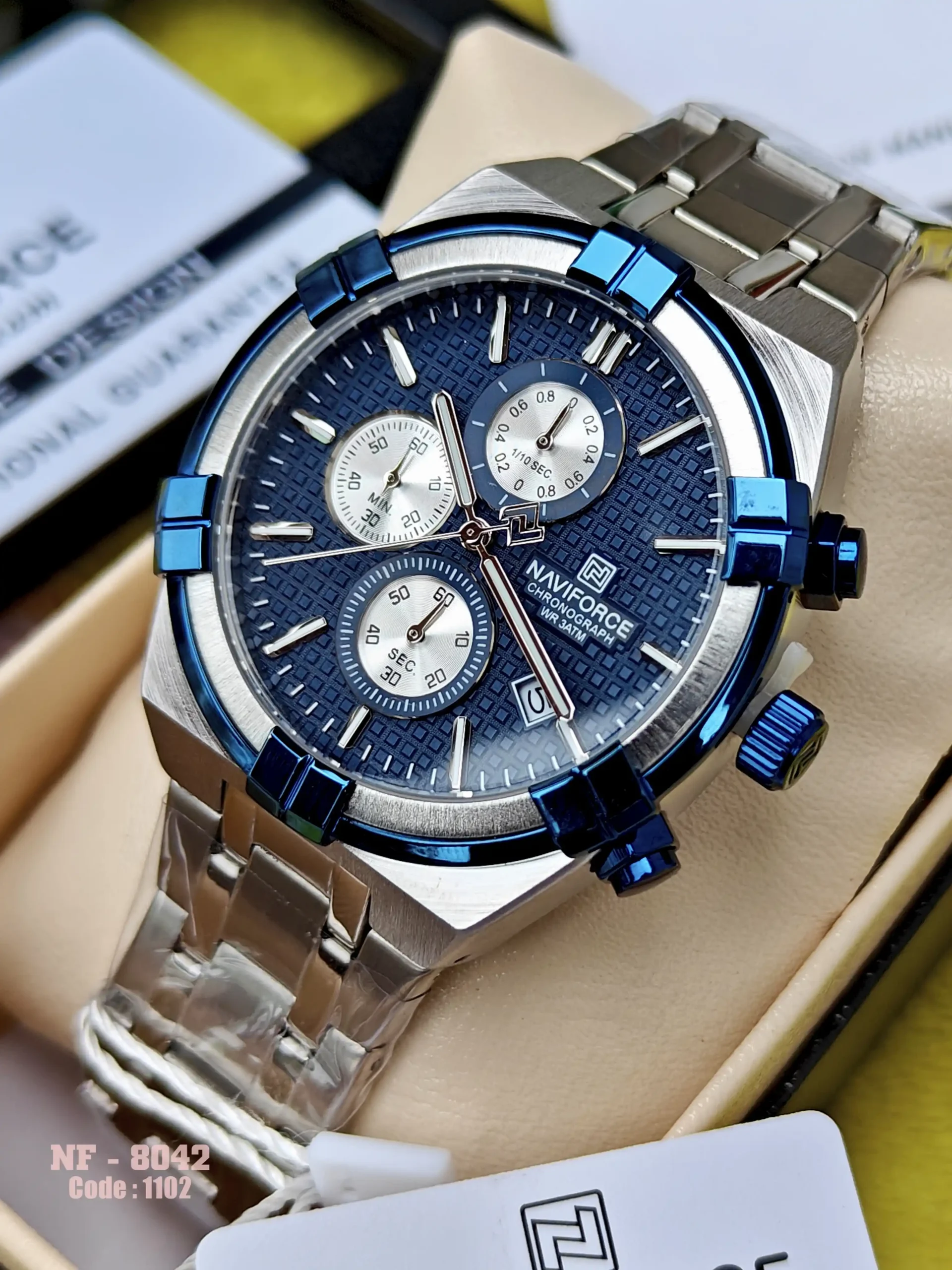 Be the first to review “Naviforce 8042 CH Stainless Steel – Silver Blue”